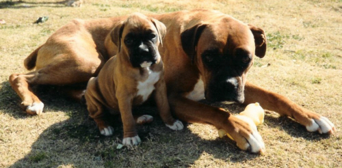 Shera our first Boxer with one of her puppies!